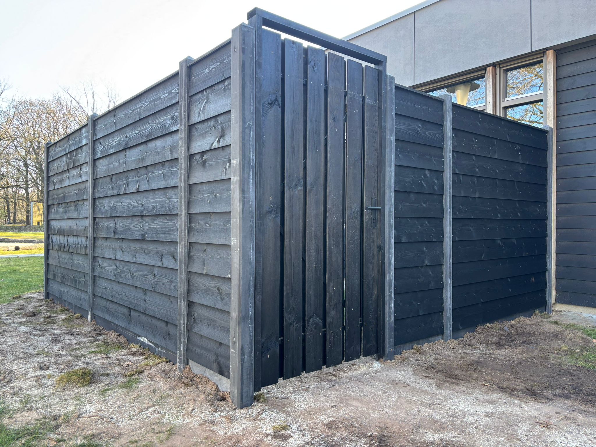 Zwarte grenen schuttingen
